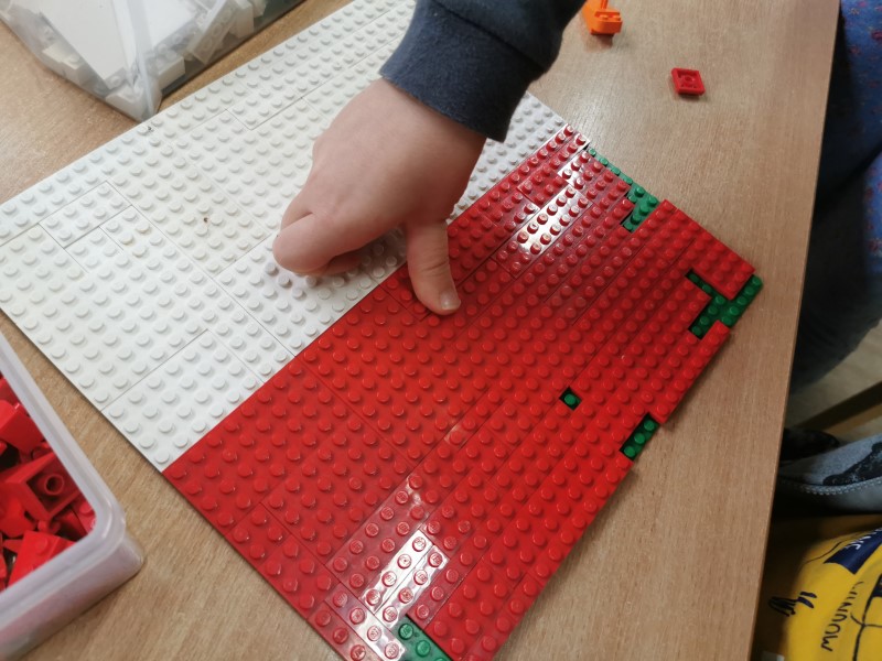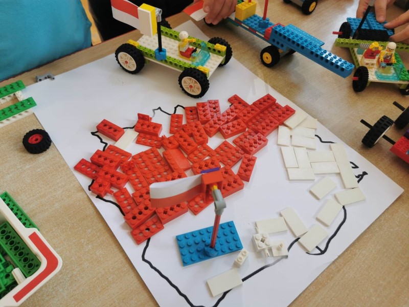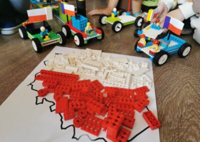 My też celebrujemy ten dzień na warsztatach Kreatywne Klocki. Uczestnicy mieli za zadanie zbudować flagę oraz stworzyc kontur Polski z klocków LEGO. Dzieci skupiły się na tworzeniu biało-czerwonej kompozycji, korzystając z różnych kształtów i rozmiarów klocków. Duch twórczej zabawy unosił się w powietrzu.