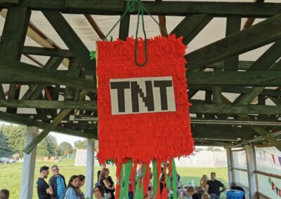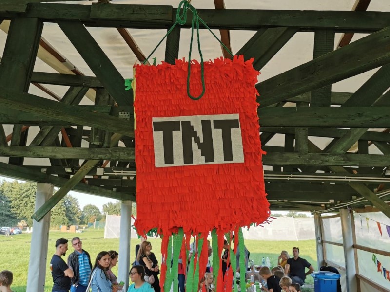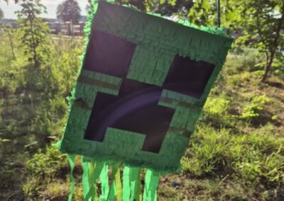 A na koniec? Piniata! Zamiast czekać, aż Creeper eksploduje na Steve’u lub Alexie, walniemy go, aż wybuchnie i odda wszystkie pyszne cukierki!