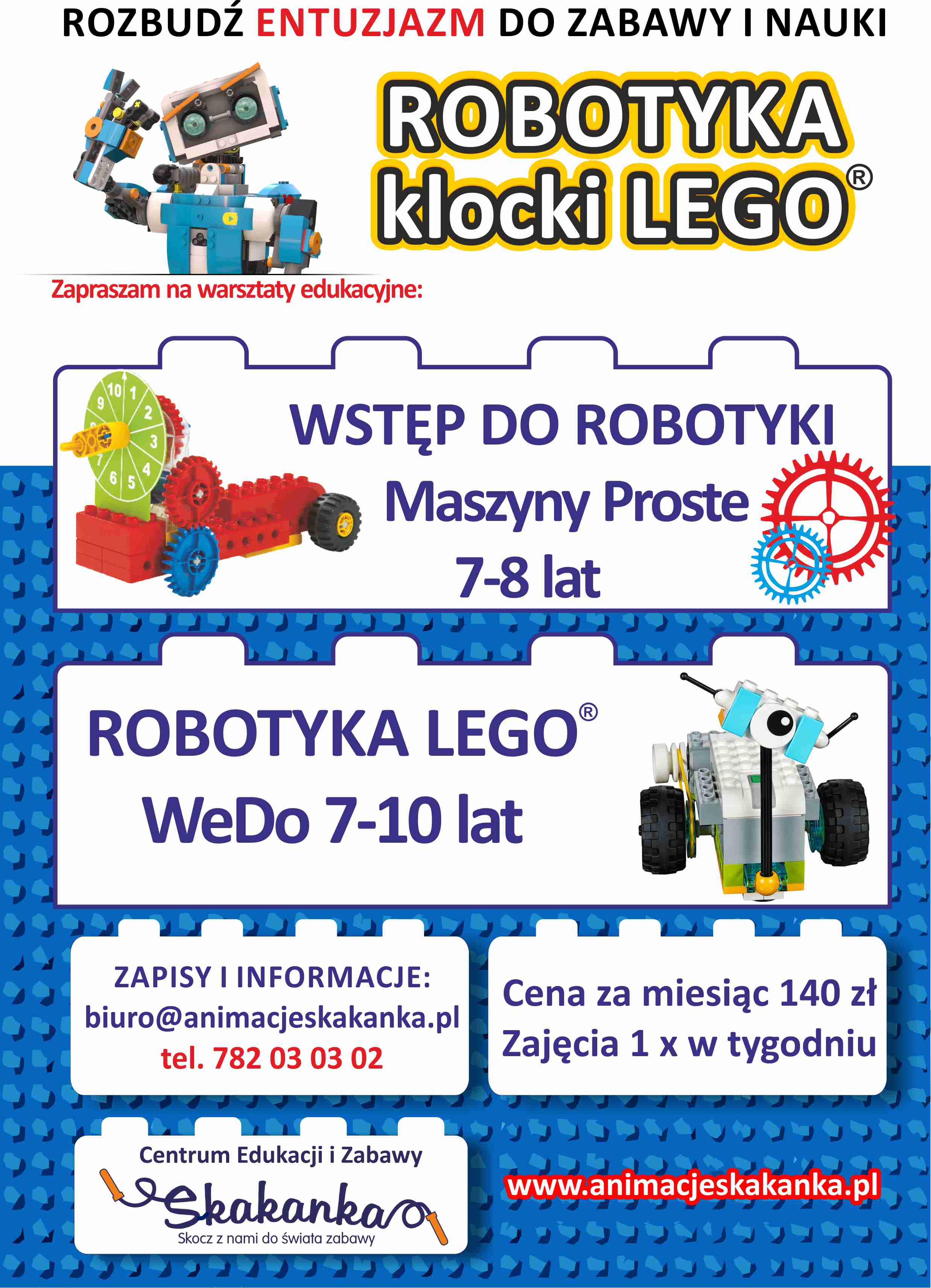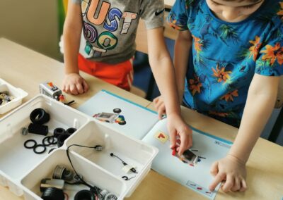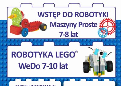Ciekawość, kreatywność i umiejętność podejmowania decyzji – poprzez zabawę odkryjemy najlepszy sposób na naukę. Dzieci programując ruch robota nauczą się rozpoznawać pojedyncze elementy tworząc bardziej skomplikowane procedury. Dzięki prostym programom wprowadzimy do zajęć podstawowe zasady budowy maszyn i robotów wykorzystując zestawy LEGO: Maszyny Proste, Boost oraz WeDo 2.0.